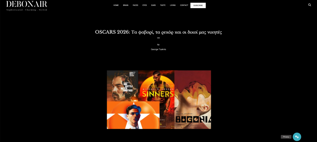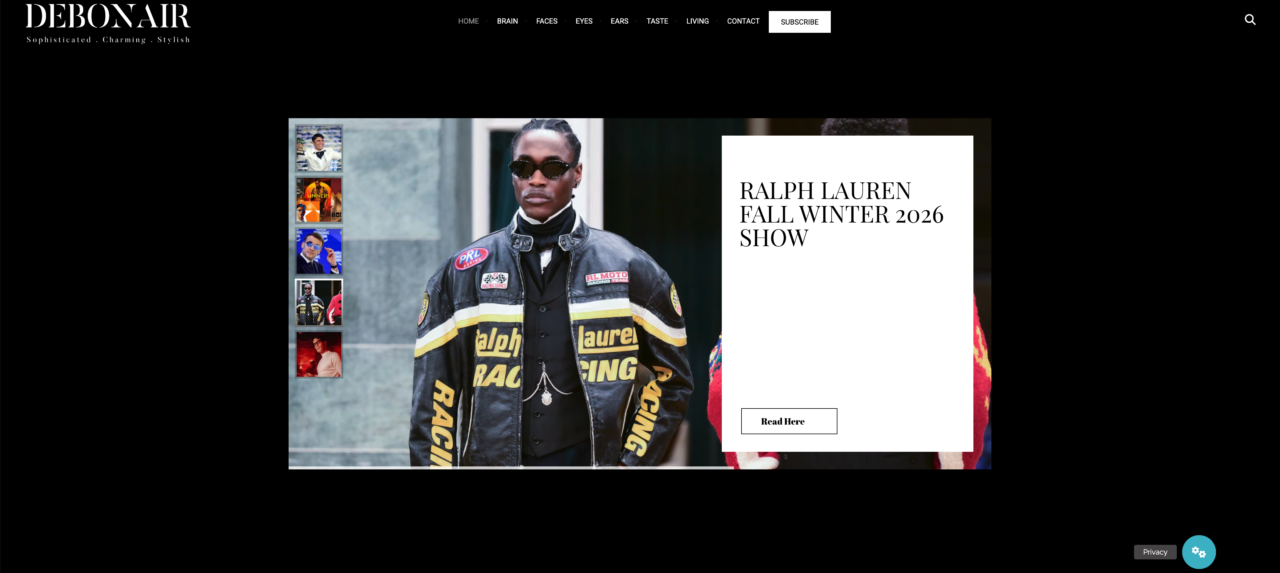 Debonair is a lifestyle blog for men, focused on style, culture, taste, design, music, and modern living. Through curated content across categories such as Brain, Faces, Eyes, Ears, Taste, and Living, it offers inspiration and perspectives for men who appreciate timeless style and contemporary culture.